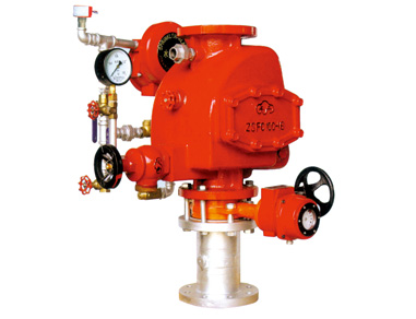干式報(bào)警閥用于干式噴淋報(bào)警滅火消防系統(tǒng) 中,屬于系統(tǒng)消防供水的報(bào)警及控制閥門,該系統(tǒng)一般應(yīng)用于環(huán)境溫度低于4℃的建筑物中,在伺應(yīng)狀態(tài)時(shí),由系統(tǒng)管網(wǎng)中的壓縮空氣通過干式報(bào)警閥將消防壓力水封于供水側(cè),當(dāng)閉式噴頭發(fā)生動(dòng)作引起管網(wǎng)氣壓下降并達(dá)到一定值時(shí)干式報(bào)警閥打開,壓力水通過閥進(jìn) 入系統(tǒng)管網(wǎng)滅火。 性能參數(shù):
